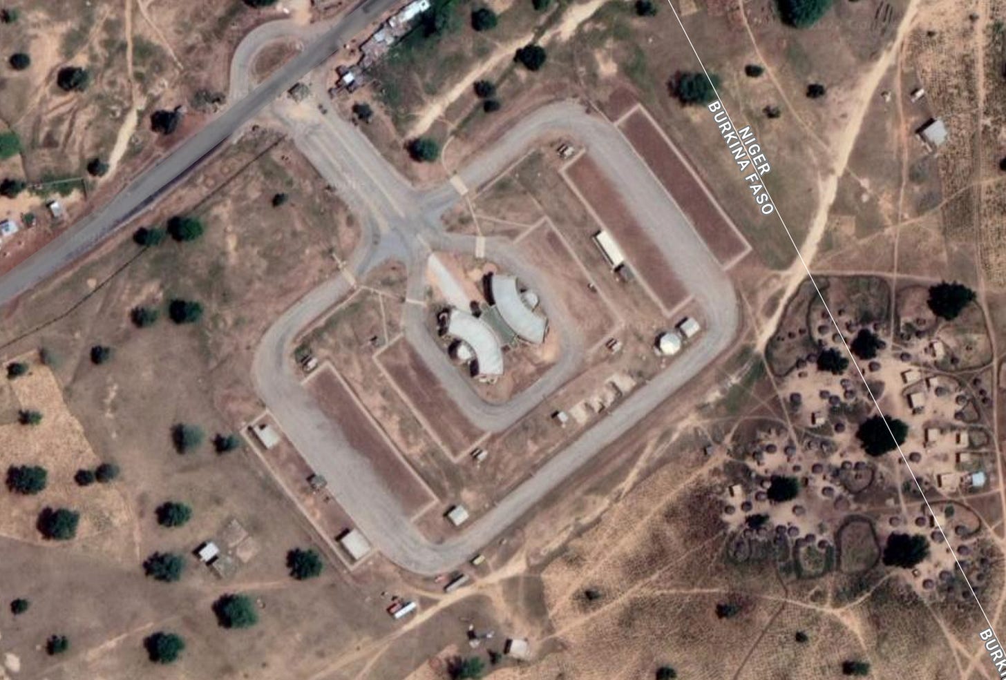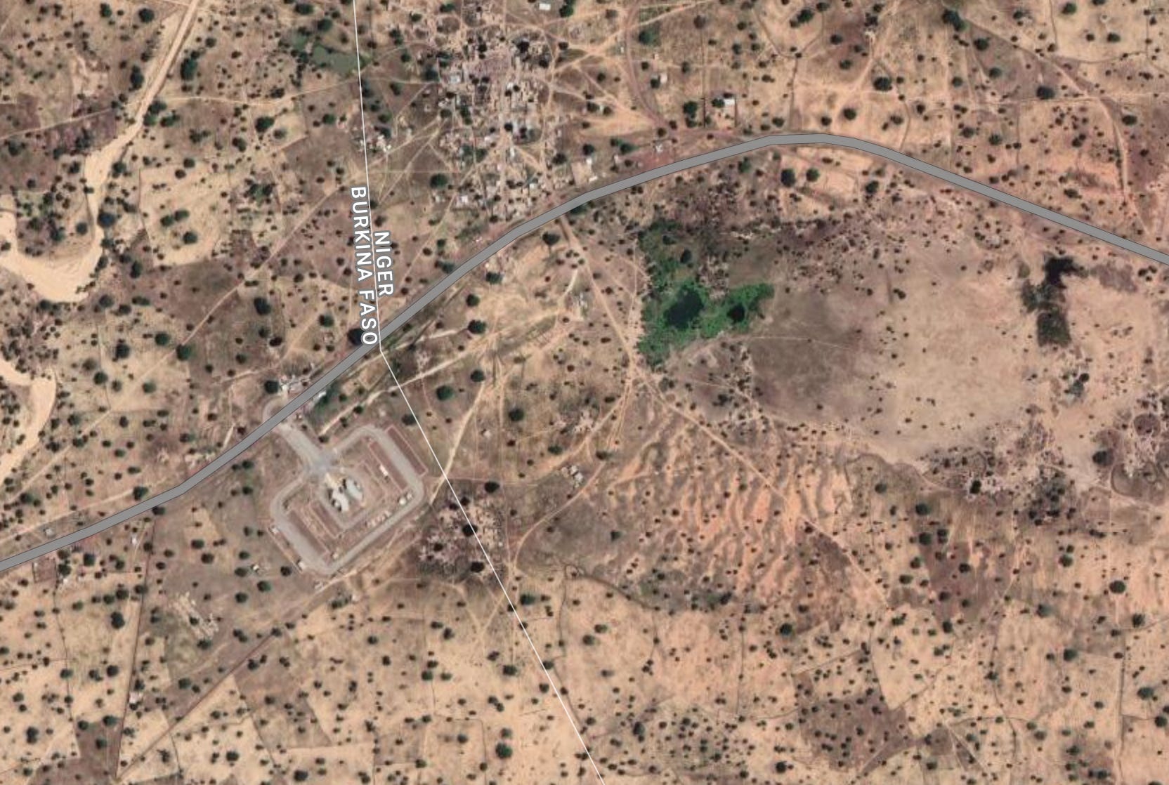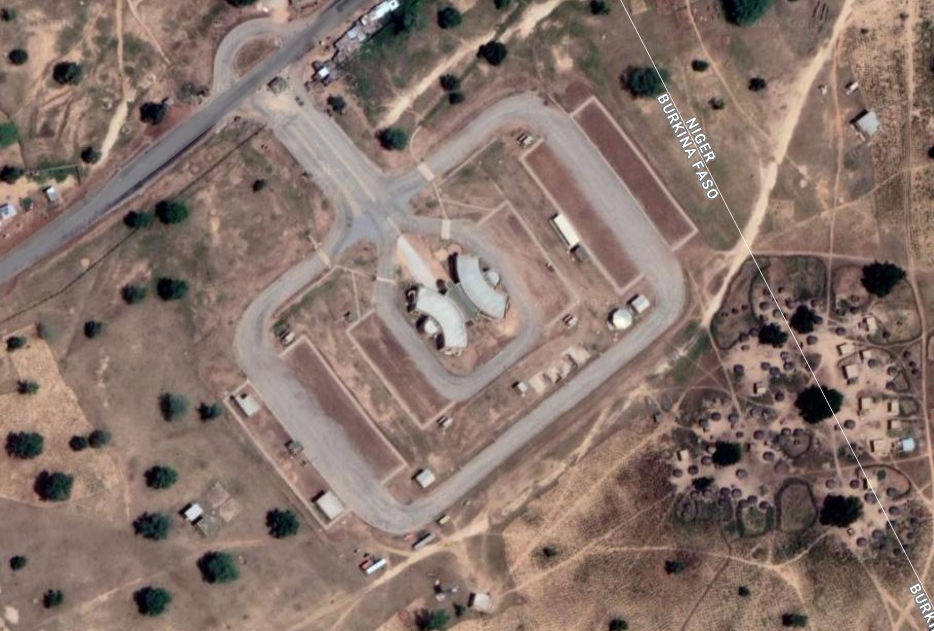 On voit assez clairement, côté Burkina Faso, ce qui semble être une base.