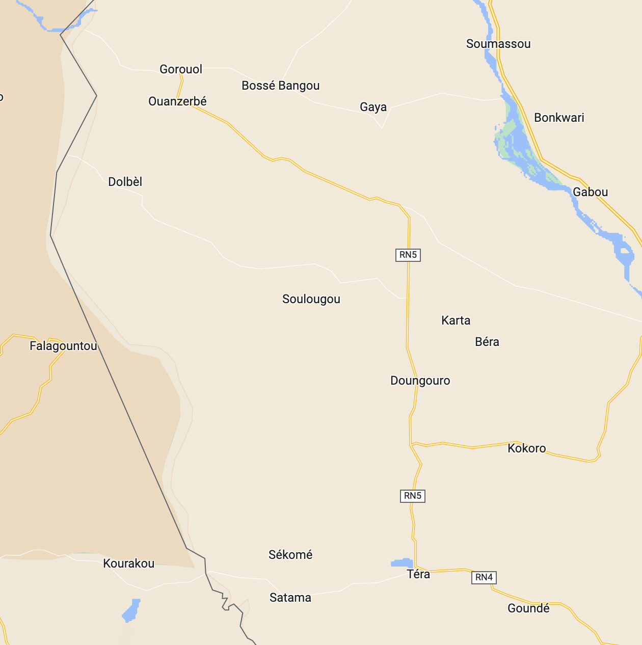 Par réflexe, je suis allé voir une carte des routes au niveau de la frontière Burkina Faso / Niger afin de voir celles qui pourraient accueillir un poste de police aux frontières.